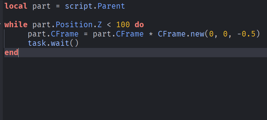 part.CFrame = part.CFrame * CFrame.new(0, 0, -0.5)